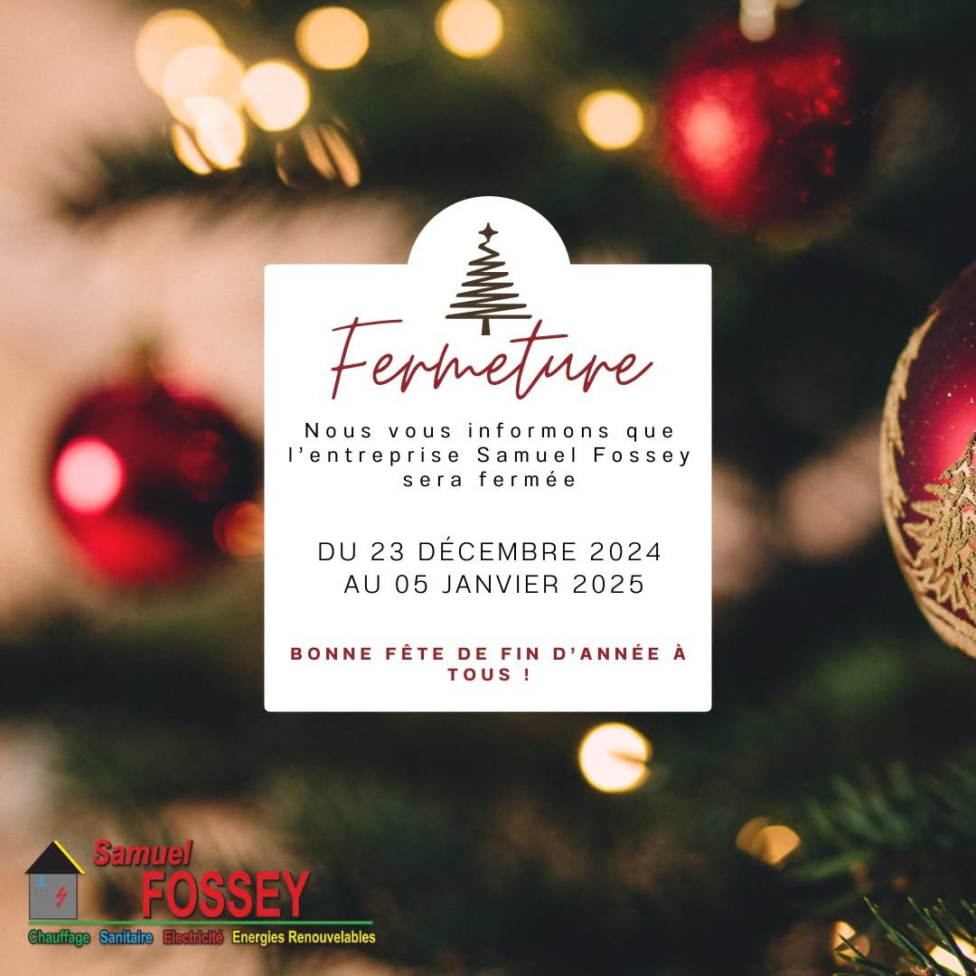 L'entreprise Samuel Fossey sera fermée pour la période des fêtes, nous vous souhaitons de bonnes fêtes de fin d'année.